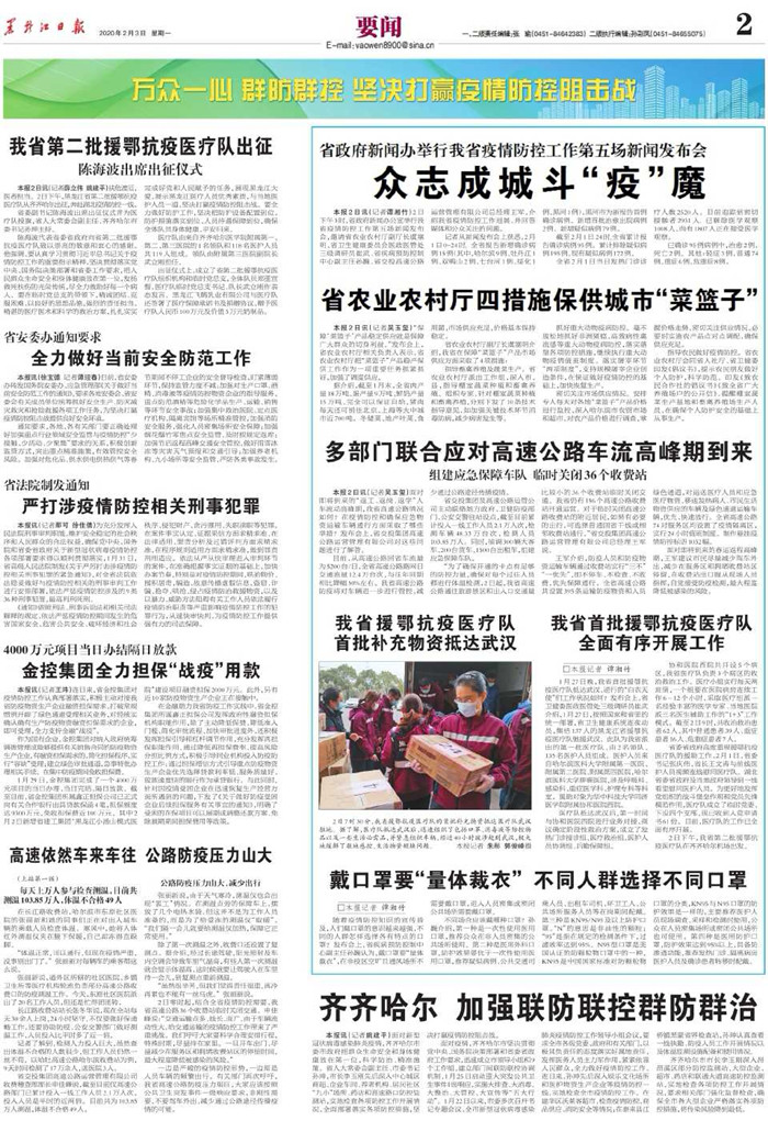 1月29日,金控集團(tuán)完成了一個(gè)4000萬(wàn)元項(xiàng)目的當(dāng)日辦理、當(dāng)日完結(jié)、隔日放款。截至目前,省金控集團(tuán)所屬鑫正擔(dān)保公司已正式向有關(guān)合作銀行出具貸款保函4筆,擔(dān)保額度達(dá)9300萬(wàn)元,免收擔(dān)保費(fèi)近100萬(wàn)元。其中2月2日新增省建工集團(tuán)“黑龍江小湯山模式醫(yī)院”建設(shè)項(xiàng)目融資擔(dān)保2000萬(wàn)元。此外,另有近10家防疫物資生產(chǎn)企業(yè)正在接觸中。